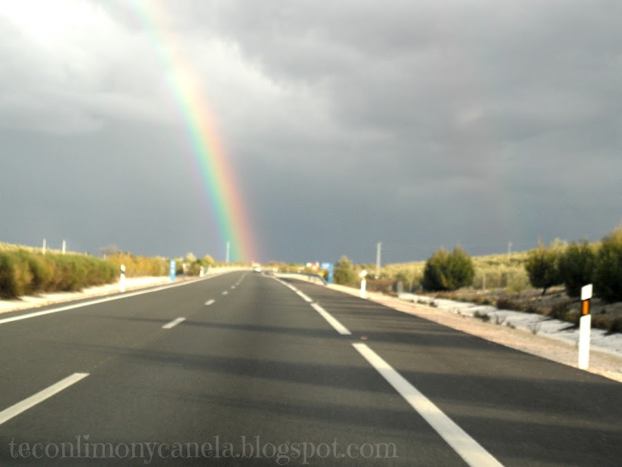Perdonad la calidad, pero como podréis ver, la hice desde el coche, en plena autopista, y no era plan de parar, por un lado porque no es sitio, y por otro porque mientras te paras y preparas, seguramente ya haya desaparecido el arcoiris.