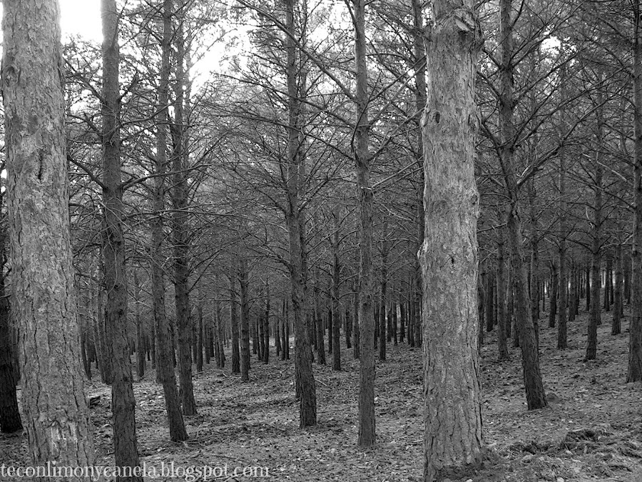 Pero en uno de mis paseos di con un pinar muy seco, y creo que cada paisaje tiene una belleza que resaltar. En este caso, había que resaltar esa sequedad, y he pensado que podría ser la ocasión de "estrenarme" con la falta de color...