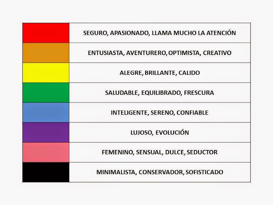 Según las emociones que quiere trasmitir, seleccione el o los colores en la tabla:
