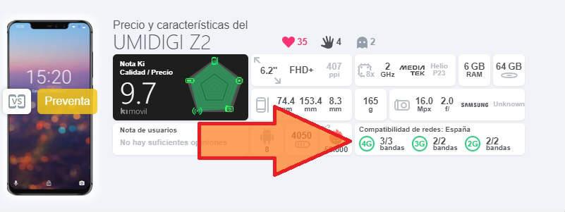 Kimovil es una buena fuente para comprobar la compatibilidad de redes En el siguiente post del blog de GearBest tenéis una utilísima guía de compatibilidad de bandas, países y operadoras. Si ya tenemos echado el ojo a un teléfono en concreto también podemos ver su ficha en la web de Kimovil, donde se muestra la compatibilidad de redes que ofrece cada teléfono en nuestro país.