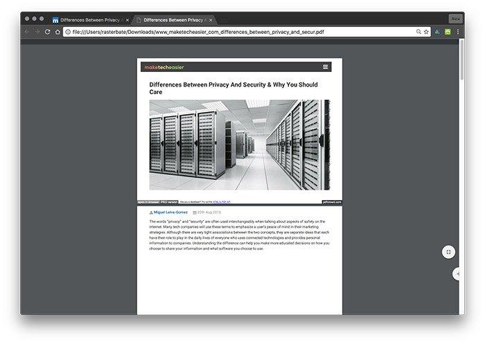 Mi extensión favorita de Chrome para convertir páginas web en PDF es Print Friendly & PDF . Una vez instalada, la extensión se encuentra en la barra de herramientas, lista para su uso. Al hacer clic en él, aparecerá una ventana emergente que le mostrará una vista previa de cómo será su PDF. Hay un montón de características interesantes bajo el capó, incluyendo la posibilidad de eliminar elementos (como anuncios), cambiar el tamaño del texto, eliminar imágenes o correo electrónico directamente desde la vista previa. Cuando haya terminado, el PDF tendrá la URL original en la parte superior de la página, para que pueda encontrar el sitio original en cualquier momento que lo necesite. Además, también puede utilizarlo para realizar impresiones de aspecto más limpio e imprimir directamente desde la ventana emergente Print Friendly (Imprimir para imprimir).
