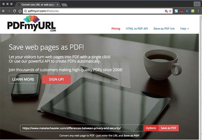 Definitivamente hay más de un sitio web que convertirá una URL en un PDF, como revelará incluso el googling más casual, pero pdfmyurl.com es el más potente. Mientras que cualquier usuario puede acceder a las opciones gratuitas, la versión de pago, que comienza en $15/año, le da un control increíble. Puede hacer cosas sencillas como seleccionar el tamaño y la orientación de la página o realizar tareas más complejas como marcar páginas con marcas de agua o añadir gestión de derechos y cifrado.