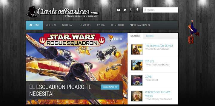 La web de Clásicos Básicos tiene un diseño excelente, y, además, está perfectamente ordenada y clasificada. Cuenta con un gran volumen de juegos, recogiendo títulos, desde 1984 hasta 2012, para plataformas como Amiga, MegaDrive, Spectrum, SNES o Nintendo 64 entre otras.