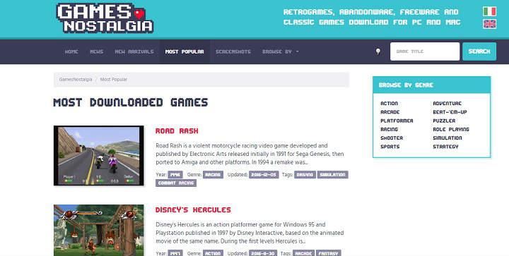 Esta es otra página en inglés importante en esto de los juegos abandonware. Tiene un montón de listas, con los juegos más populares, los más descargados etc. Al lado de cada título, se adjunta una bandera: si es de color verde, significa que se puede descargar gratis. Si es de color rojo, significa que el dueño todavía conserva los derechos y no quiere distribuir el juego de forma gratuita –en tal caso se adjunta un link de compra a GOG-.