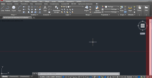 Como ya sabéis la barra de desplazamiento es lo que vemos en la imagen inferior, y normalmente Autocad la tiene desactivada por defecto, ya que existe otros métodos mejores para desplazarte por la pantalla del programa.