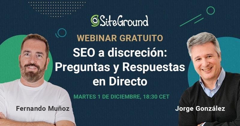 Este webinar estará dedicado a resolver todas tus dudas SEO en directo junto a Jorge González y otro gran experto en SEO, Fernando Muñoz. Algunas de las preguntas que contestarán durante el webinar son: