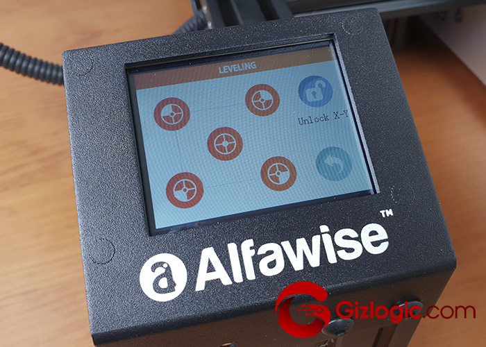 En una impresión 3D se busca siempre un buen resultado con la máxima precisión. Alfawise U30 ofrece una precisión de posicionamiento del eje XY de 0.0125 mm y posicionamiento del eje Z de 0.0025 mm. Desde la propia impresora accedemos a un apartado de calibración que mueve la cabeza a los cuatros extremos de la superficie. La cama se ajusta con los tornillos colocados en la zona inferior con una fijación manual por rosca. No tuvimos demasiado problema en su calibración, aunque los tornillos deberían ser más largos.