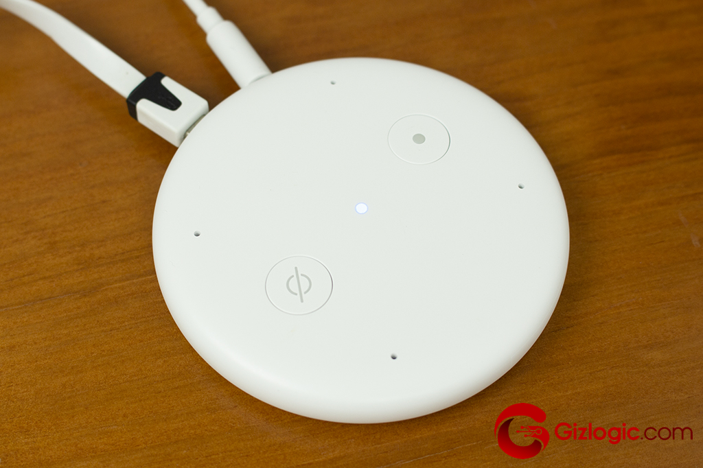 ¿Pero qué pasa si ya tienes un gran equipo de sonido y no te interesa Amazon Echo Show? Puedes dotarlo de las capacidades de Alexa con el Amazon Echo Input. Este dispositivo tiene forma de disco plano con un grosor de 14 mm. Por tanto, puede adaptarse a cualquier espacio e incluso ocultarse detrás del altavoz. Su conexión se puede realizar mediante Bluetooth o empleando un cable jack 3,5 mm incluido. La conexión micro USB se utiliza para suministrar la energía eléctrica necesaria para su funcionamiento.En la parte superior vemos dos botones. El primero de ellos sirve para mutear el micrófono e impedir que Alexa siga escuchando. El segundo activa el asistente sin necesidad de llamarla. También tenemos los cuatro micrófonos omnidireccionales que se encargan de recoger nuestra voz, pero también filtrarla del ruido ambiental. Las prestaciones que ofrece Echo Input son las mismas que el resto de altavoces Echo de la marca. Nuevamente podemos recurrir a las skills y los servicios streaming de música, Spotify o Amazon Music.