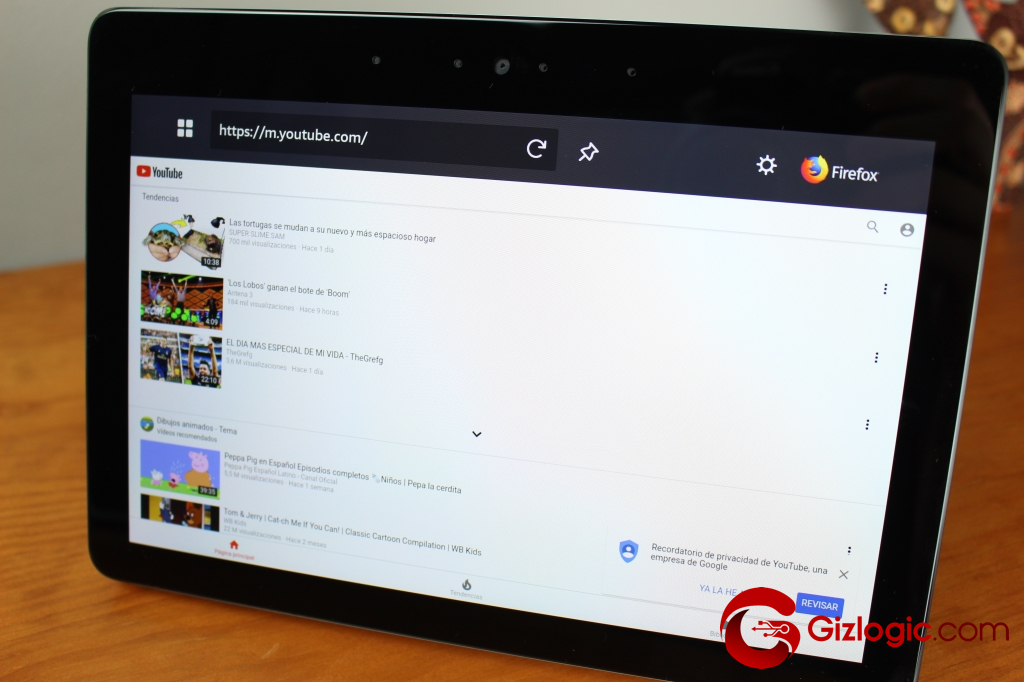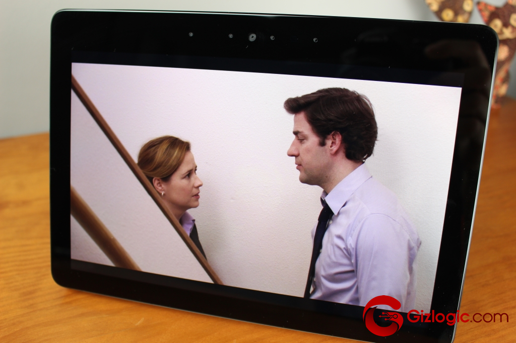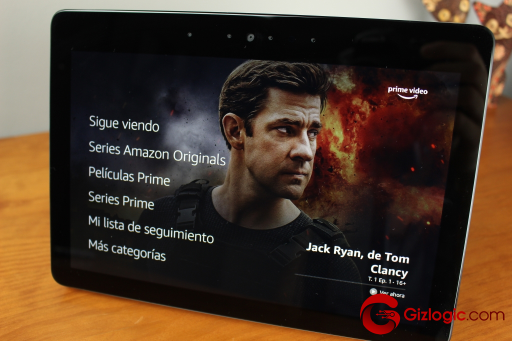 Como avanzamos, el Amazon Echo Show monta una pantalla de 10,1 pulgadas con unos marcos grandes. Aunque la verdadera pega está en su resolución de 1.280 x 800 píxeles (resolución HD). Dada la diagonal de pantalla, habría sido mejor contar con un panel Full HD para ofrecer un nivel de detalle superior. Donde más lo echaremos en falta será a la hora de reproducir contenidos de Amazon Prime Video o YouTube. No obstante, en pocas ocasiones vamos a estar a una distancia cercana a la pantalla, así que poco se apreciaría esta resolución. En el resto de funciones, los textos e imágenes lucen estupendamente.Pantalla LCD con resolución HD
