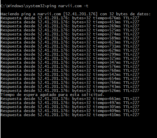 Ingresamos al cmd/consola/terminal desde nuestro sistema operativo ,intentamos hacer peticiones con el comando ping observamos que este llegaba las paquetes perdidos