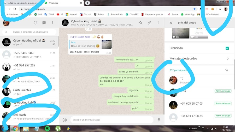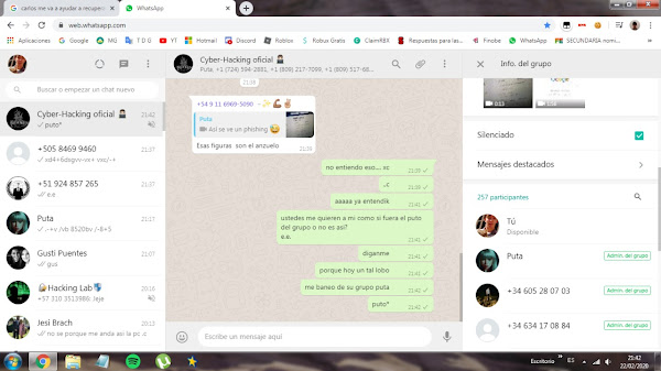La victima envio una captura al grupo de WhatsApp de sus actividades y comenzó a ofender a los usuarios de la comunidad , desde este punto he podido analizar la captura que el mismo envio , tenia registrado contacto , su cuenta de gmail, grupos donde estaba el añadido , sus lista de navegación favorita , y el mas importante su foto de perfil ya que si no lo tienes agregado no puedes ver su perfil , un error que ha acometido la misma victima