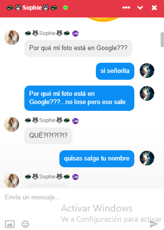 Luego de encontrar resultados decidí enviarle captura de lo que había encontrado solo para ver saber su reacción de la victima . Pensé que se daría cuenta que todo lo que publica esta en la red , me tomo de sorpresa saber su reacción.