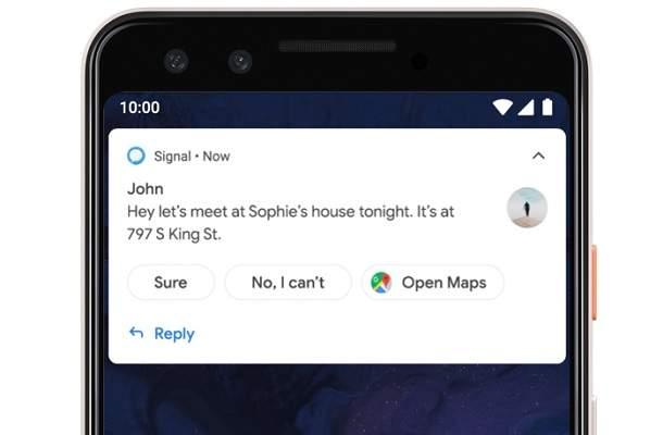 Las notificaciones ahora serán “inteligentes”. El sistema es capaz de detectar los mensajes de texto que recibimos de las diversas apps de mensajería que tenemos instaladas, y nos sugiere posibles respuestas automatizadas. Es una forma de contestar a los mensajes de forma rápida, e incluye emojis y accesos directos a otras aplicaciones (Google Maps, WhatsApp, etc.).El modo oscuro llega a Android 10 de forma nativa
