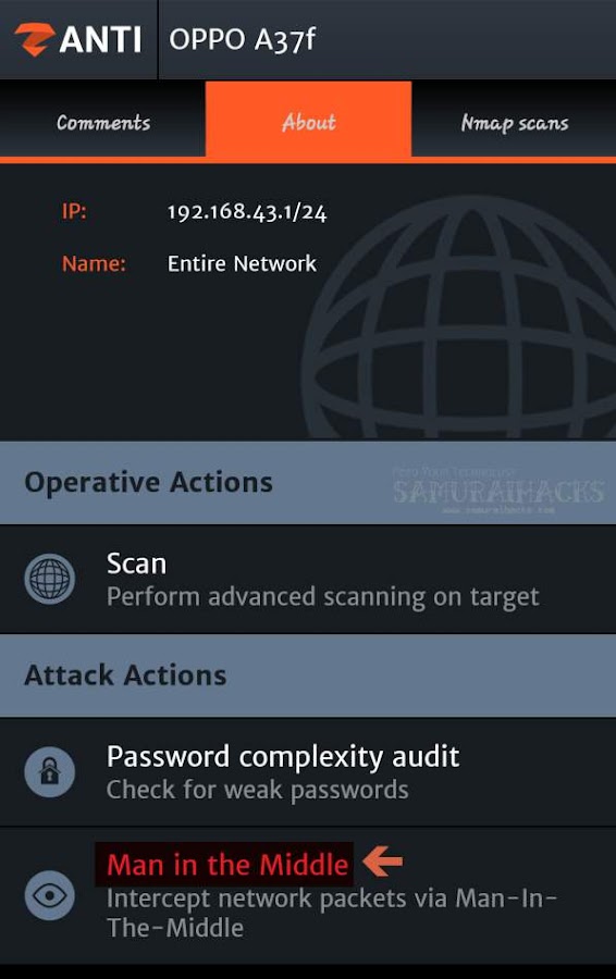 Después de seleccionar el objetivo, mostrará una lista de diferentes ataques, continúe y seleccione "Hombre en el medio" de la lista.