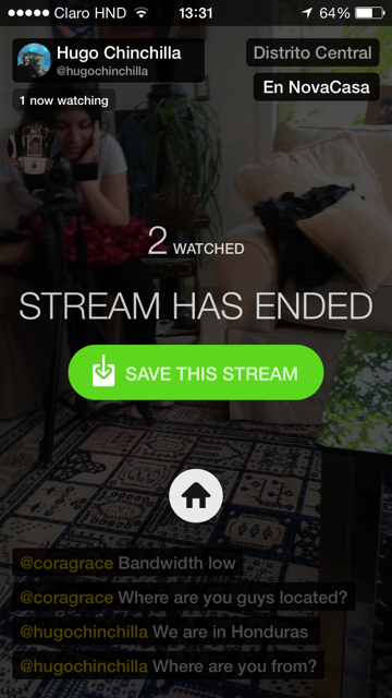 Lo mejor de todo es que al finalizar el evento, Meerkat da la opción de guardar el video en el teléfono para tener la opción de subirlo en otras redes sociales.