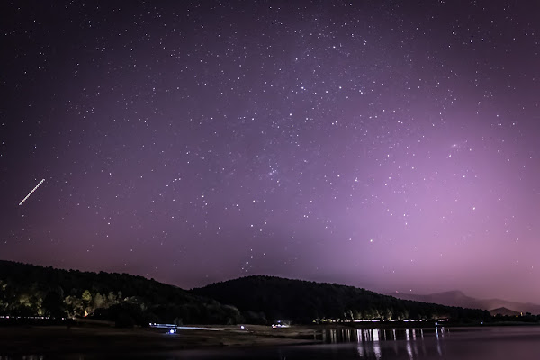En la portada has podido ver la Vía Láctea y en estas fotos siguientes verás la constelación de la Osa Mayor y otras fotos de estrellas , que como podrás comprobar tienen bastante contaminación lumínica porque están hechas en el embalse de la Jarosa en la Sierra de Guadarrama, próximo a Madrid.