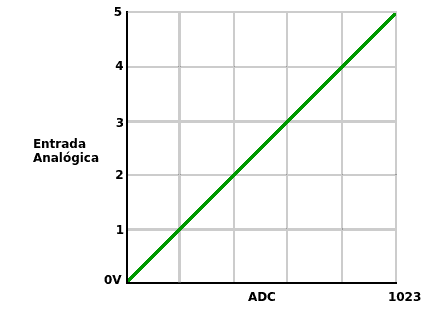 Por si mismo Arduino es incapaz de realizar lecturas analógicas y para esta función utiliza un conversor ADC (Analog Digital Converter) que convierte la entrada analógica en una digital soportada por la lógica TTL (0 - 5V) de Arduino.