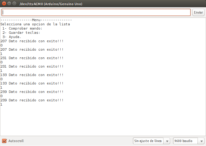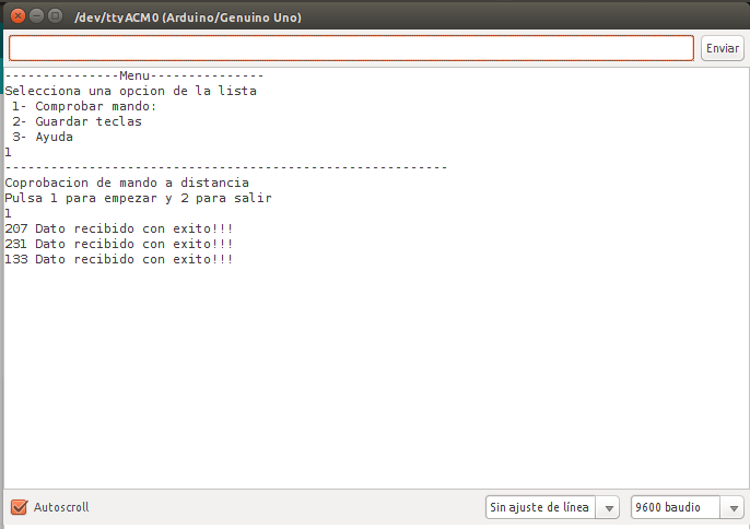 Comprobar mando: nos muestra en el terminal los datos recibidos del control remoto.