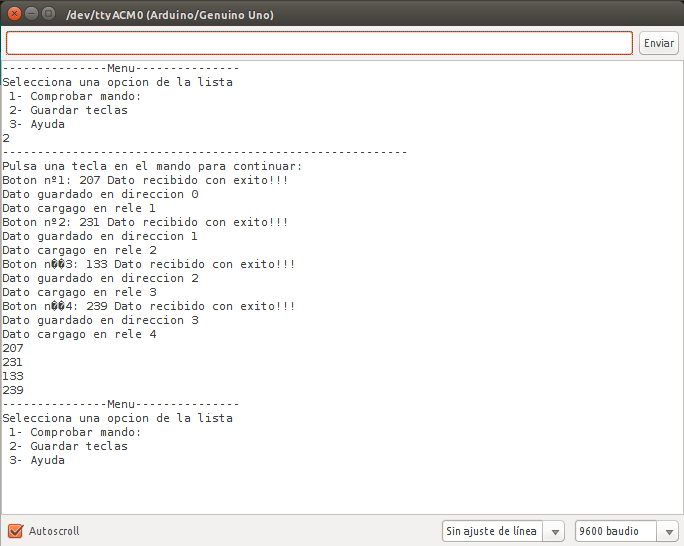 Guardar teclas: Pulsaremos las 4 teclas de control de los reles.