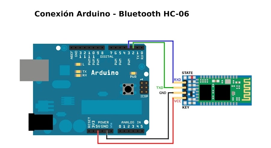 Primero conectaremos el módulo bluetooth a nuestro Arduino como en la siguiente imagen: