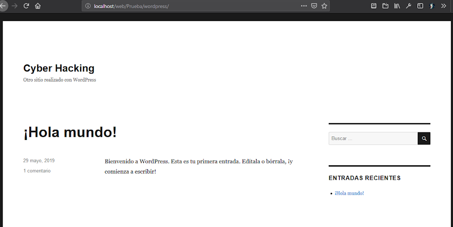 Ingresamos la pagina de wordpress de nuestra victima , yo usare una pagina local de prueba que podido configurar.