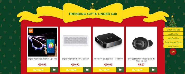Si ya estamos pensando en los regalos para estas navidades GearBest ha preparado una sección o suerte de guía con numerosas recomendaciones. Como, por ejemplo, un listado de artículos populares por menos de 40$, regalos para él o para ella etc.