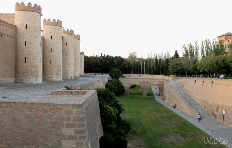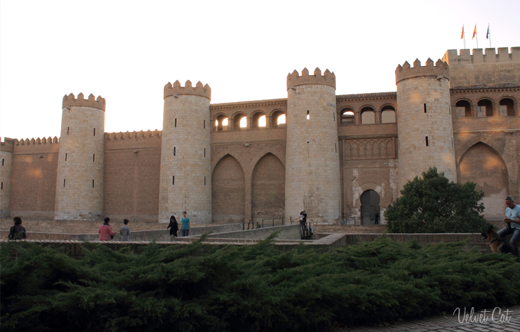 Un claro lugar con historia en Zaragoza es el Palacio de la Aljafería, visita obligada si venís por aquí de turismo. Lo he visto por dentro tantas veces (de peque con el cole unas cuantas y otras tantas con la familia) que está vez no cogí entrada, de modo que os lo voy a enseñar por fuera y os cuento muy brevemente su historia.