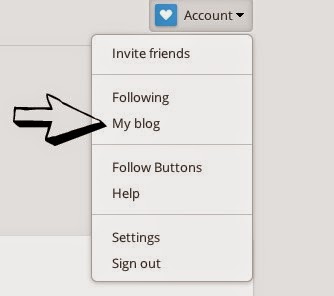 En la parte superior izquierda puedes ver el icono de tu cuenta ?ACCOUNT? - la que esta al lado del corazón azul, dale clic y verás un menú como el siguiente, allí dale clic a ?my blog?