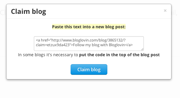 Luego de hacerlo puedes darle clic a ?CLAIM BLOG? - el botón azul - Este paso es basicamente para probar que es tu blog y no de alguien mas.