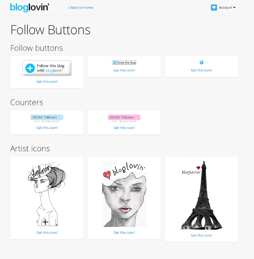 Y ¡listo! el siguiente paso seria añadir el icono para que lo agregues a tu blog y otras personas te puedan seguir :D Esto lo encuentras en el menú superior derecho --> ?ACCOUNT? - ?FOLLOW BUTTOMS?