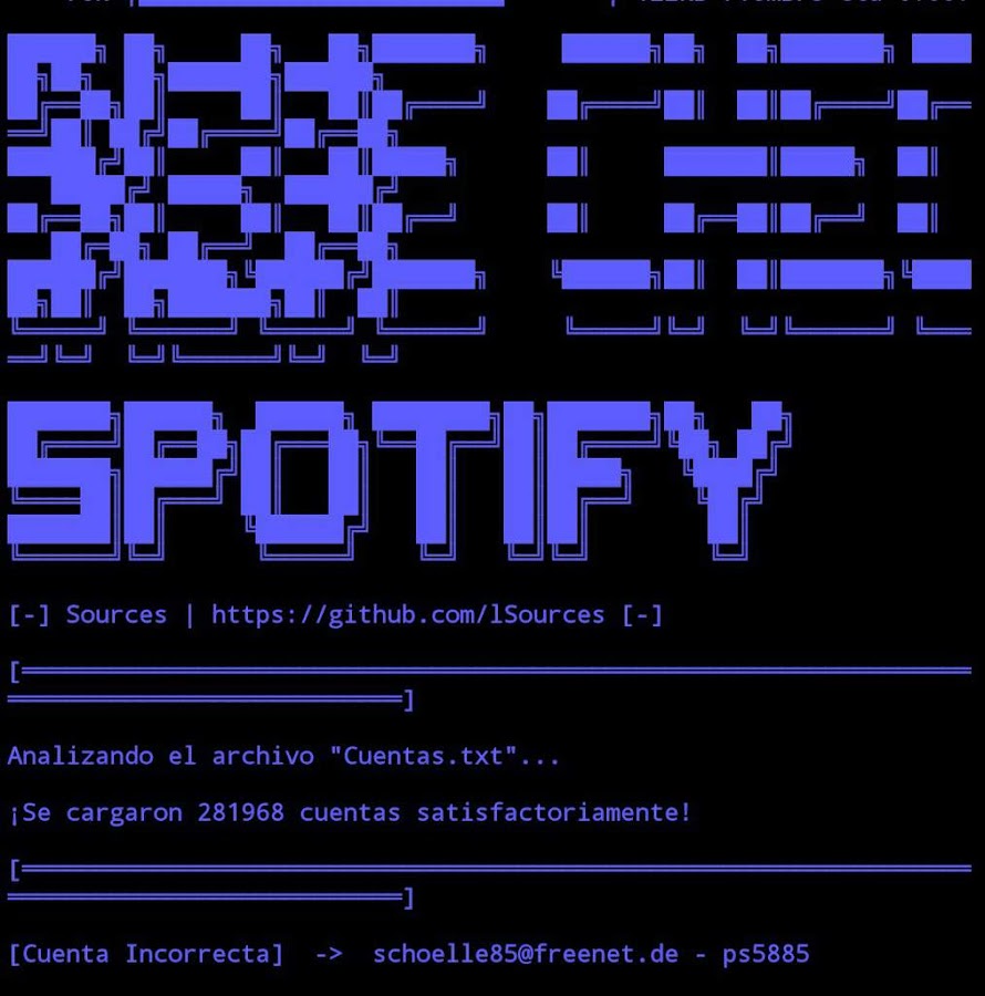 Blue Checker: Spotify. Esta herramienta nos permite el verificar que cuentas son correctas e incorrectas en una lista de combos de Spotify.