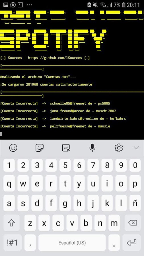 print("Asegúrese de que todas las cuentas esten en el formato correo:contraseña.")
