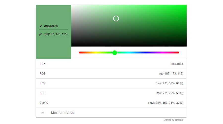 Si necesitamos más datos sobre ese color pulsamos sobre el desplegable de VALORES DEL COLOR y encontramos mucha más información.