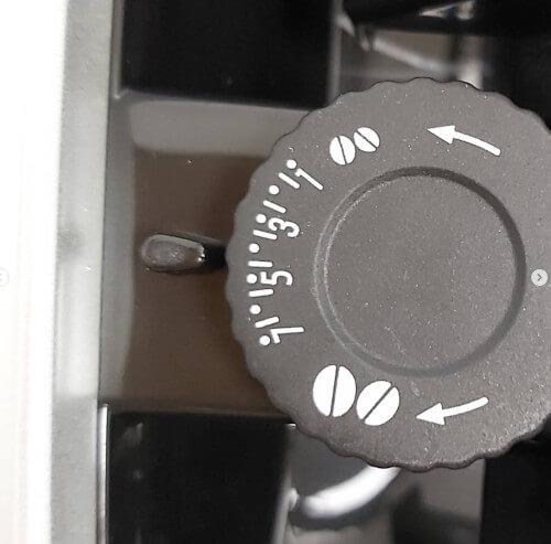 Panel de control: gracias a este conjunto de botones y rueda, solo tienes que seleccionar la intensidad de café y si quieres uno o dos a la vez y cantidad (largo o corto).