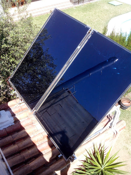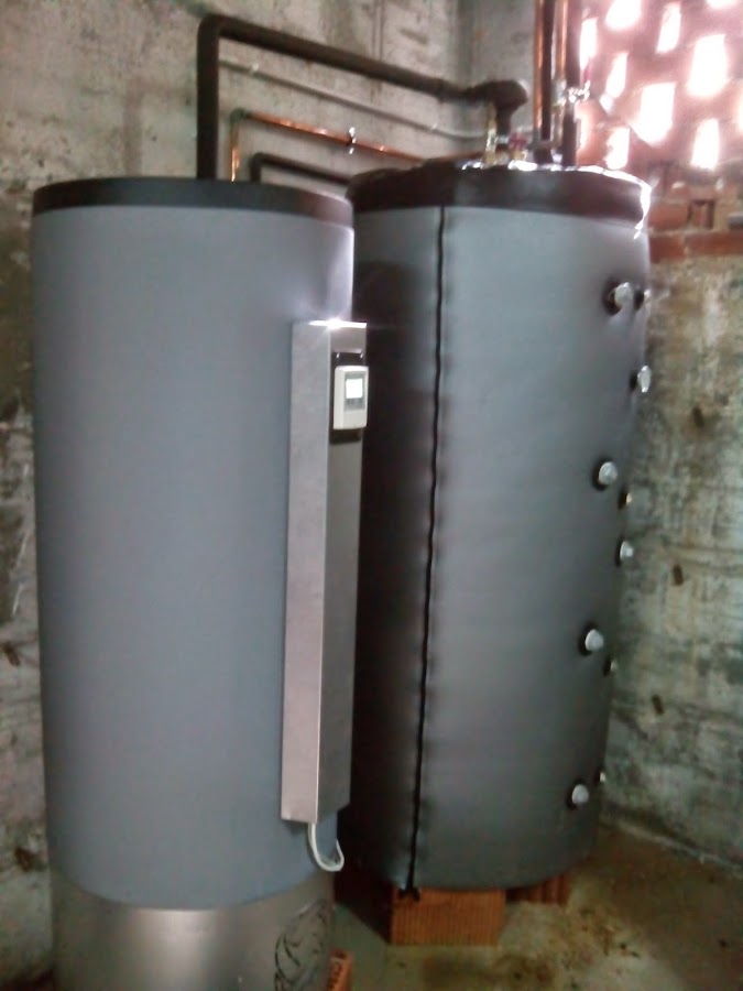 Deposito solar 300 litros (izquierda), deposito combi (derecha) para acumular 600ltros de energía térmica.