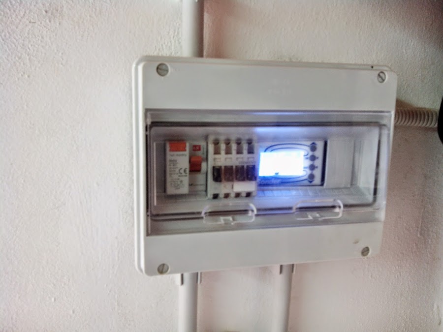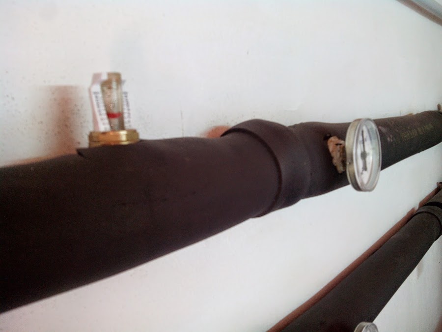 La bomba de sistema a la izquierda de la foto (derecha calefaccion) con control anticondensación para garantizar una temperatura mínima de retorno en la caldera de 55º, también con caudalimetro para ajustar el caudal l/h que pasa por la caldera