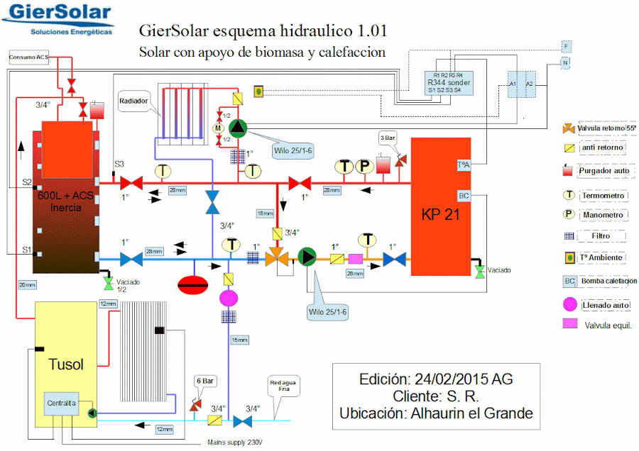 En esta entrada os dejamos una instalación de biomasa para calefacción, apoyo a ACS (agua caliente sanitaria) en combinación con un sistema solar drain pack