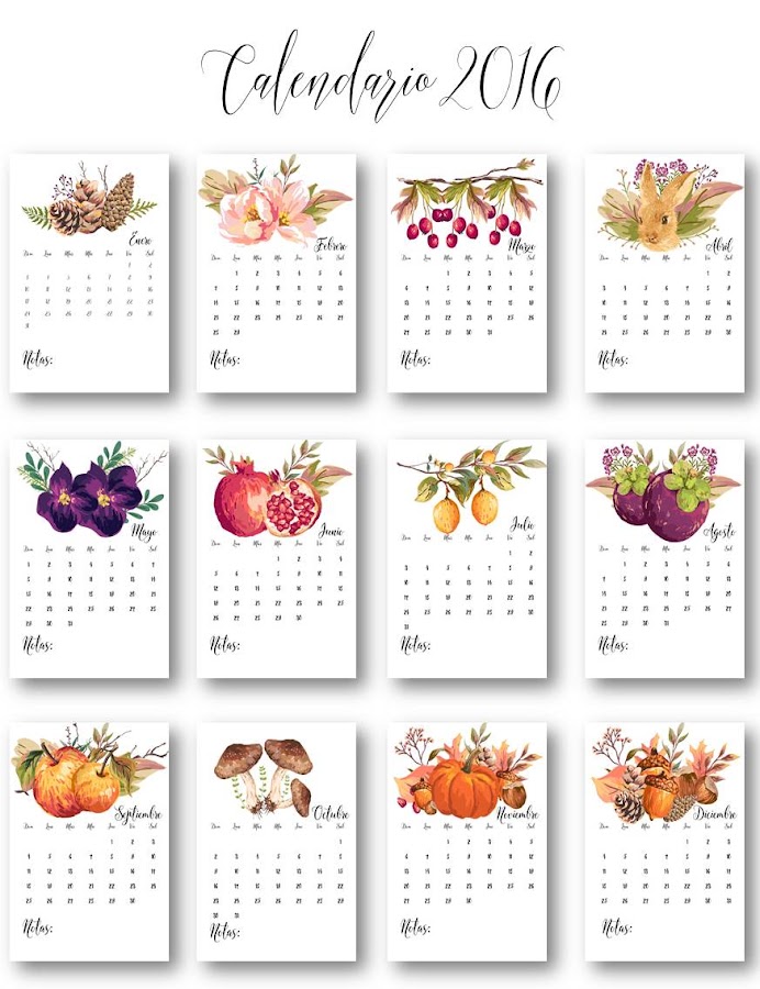 Si es que por ahora no quieres descargar los 12 meses, no te apures, a primeros de cada mes, iré compartiendo el calendario mensual y así puedes descargar uno por uno. Por ahora te dejo el mes de Enero 2016 por si te apetece descargarlo desde ya.