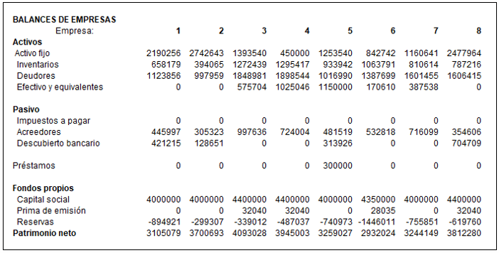 En un mercado en clara recesión en el que todas las empresas participantes han tenido pérdidas acumuladas de varios cientos de miles de euros, consiguió ganar el equipo directivo con mejor capacidad para limitar las pérdidas. Su estrategia de volumen tuvo éxito entre otros motivos porque nadie tomó la misma estrategia y les permitió obtener una alta cuota de mercado.Es interesante revisar las empresas 4 y 8, que obtuvieron la 2º y 3º plaza en la final, con estrategias muy dispares, como se puede observar en el número de trabajadores, en la política de precios o en el saldo de deudores.
