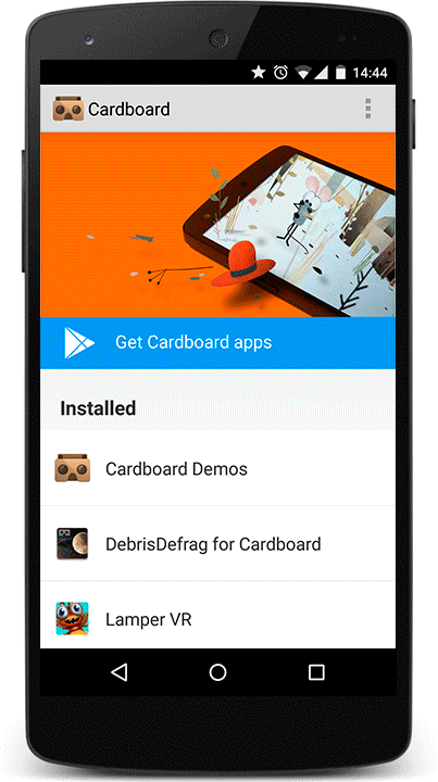 Al entrar en Cardboard Demo se abre la aplicación propiamente dicha dónde encuentras varios apartados: