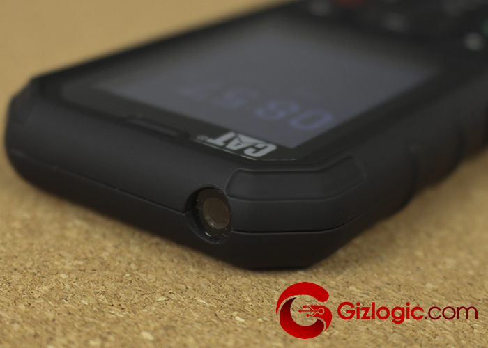 En la trasera del Cat B35 vemos la cámara principal con un sensor de 2 MP y el altavoz con una rejilla metálica protectora que rinde a un nivel excelente de volumen. En el lateral izquierdo tenemos la bandeja para dos tarjetas Nano SIM o una Nano SIM más una microSD para ampliar el almacenamiento. El inferior está dedicado a la conexión jack de auriculares y conector MicroUSB para la carga y transferencia de datos. Y por último, una práctica linterna en el canto superior. Uno de los aciertos de este teléfono que muchos profesionales agradecerán.