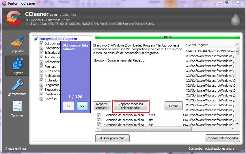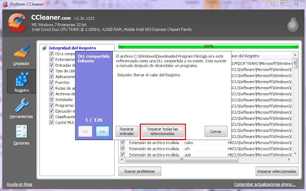 La función de limpiador de registro localiza y corrige problemas como extensiones de archivos, direcciones de programas inválidas y otras entradas no validas que tenga el registro, para estar más seguros, ccleaner permite hacer una copia de seguridad al registro antes de limpiarlo solo por precaución.