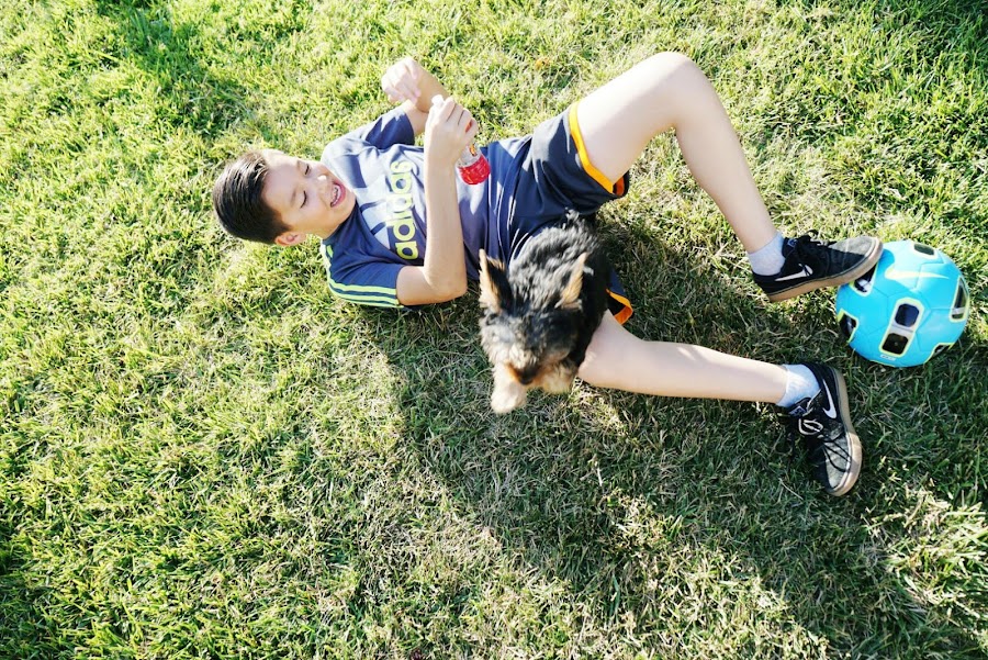 After long days of practice, school classes and other days exploring the world, staying home and playing out on the patio with his soccer ball and playing with Max is relaxing.