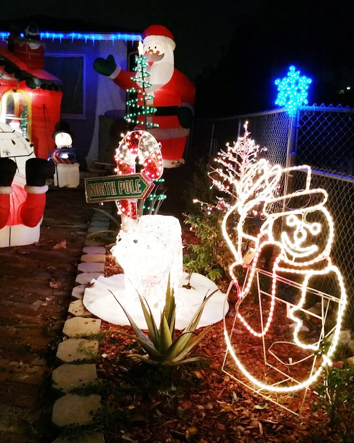 A unas cuantas cuadras de mi casa, se encuentra un lugar que por alrededor de 58 años, le han llamado el Christmas Circle (Circulo navideño) por ser dos calles formadas en círculo. Las casas se pintan de Navidad y llenan sus jardines de luces, dando un maravilloso espectáculo navideño.