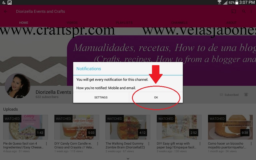 Espero que estos simples pasos te puedan ayudar para que no te pierdas ninguno de los video de Diorizella Events and Crafts y tus canales favoritos.