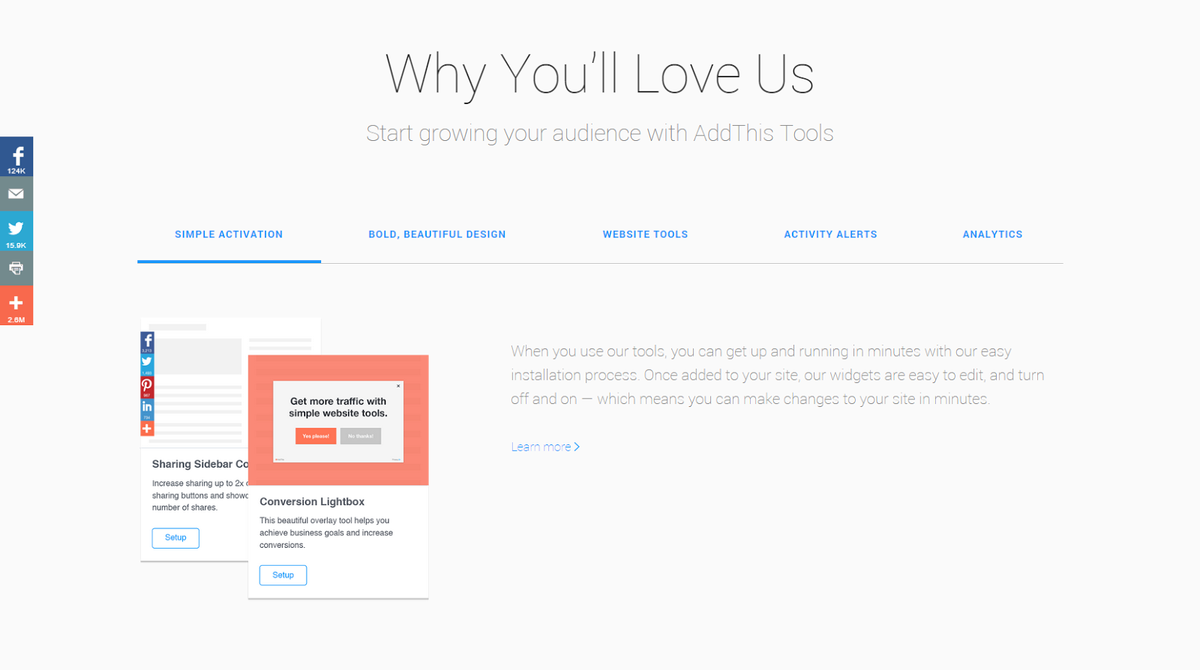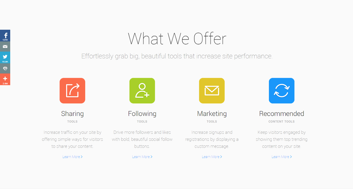 Se trata de un servicio web que permite añadir un código a tu web para que el usuario pueda añadir botones para redes sociales con los que compartir tus contenidos o seguirte.