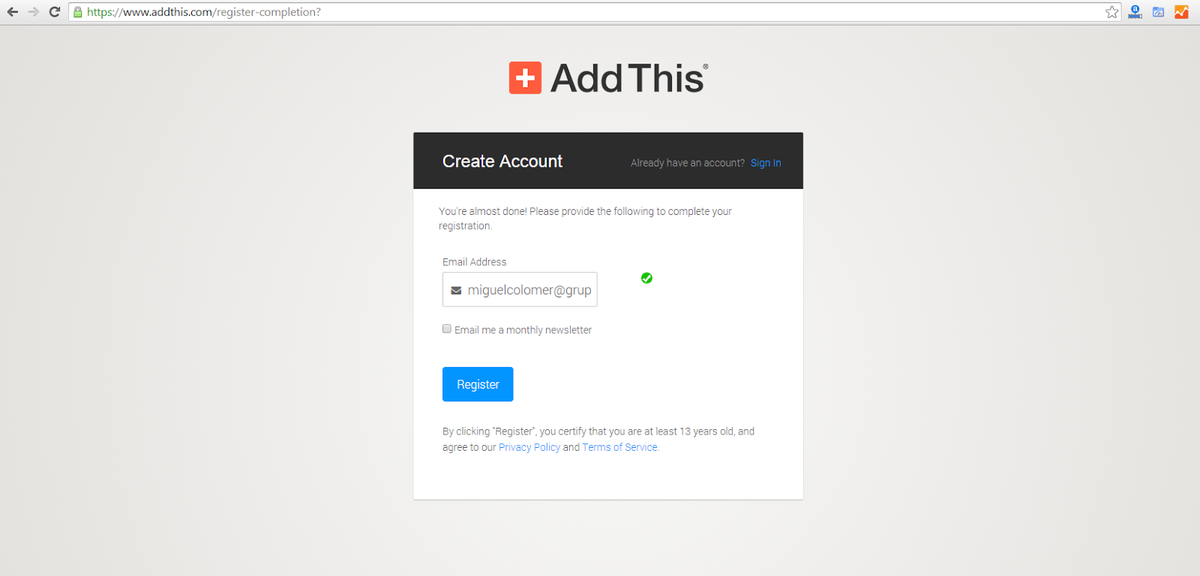 1) Puedes acceder a AddThis pulsando aquí y se te mostrará una pantalla como la que te muestro a continuación: