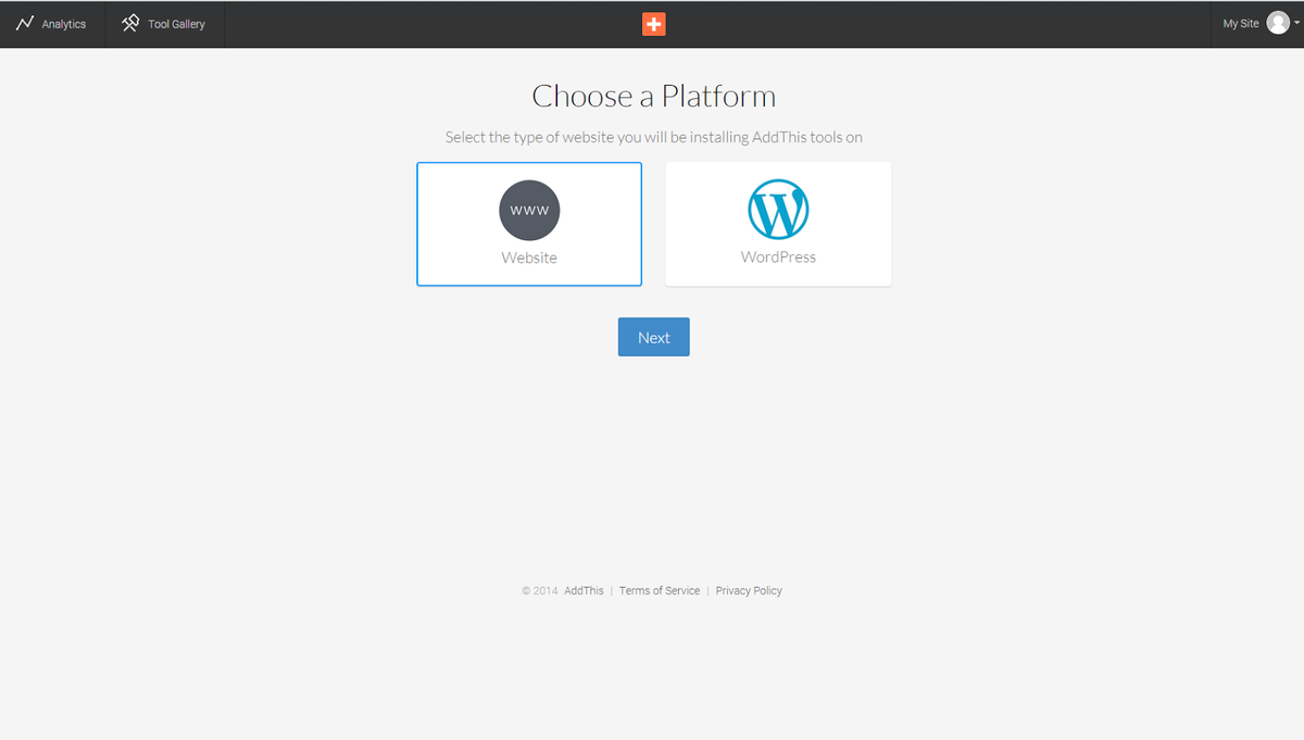 2) Si es la primera vez que te registras, AddThis te ofrecerá dos formas de utilizarlo: