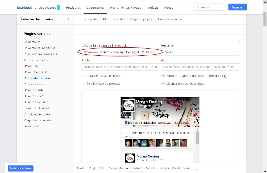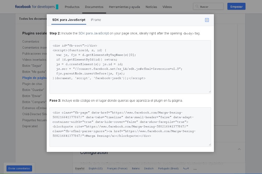 Nos saldrá un plugin de páginas que nos permite insertar y promocionar cualquier página de facebook en un sitio web con gran facilidad. Al igual que en facebook, los visitantes podrán indicar que les gusta un página o desean compartirla sin salir del sitio.