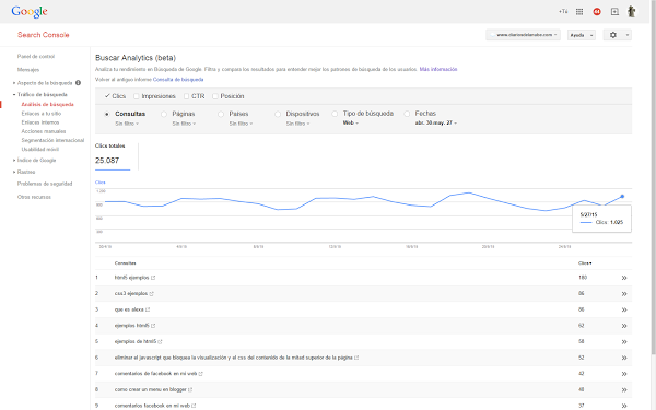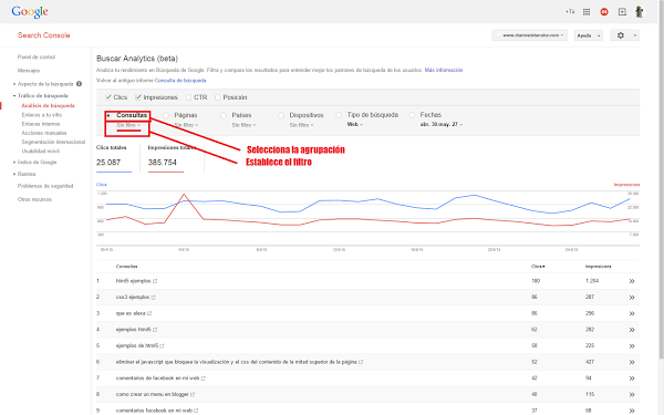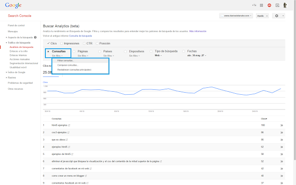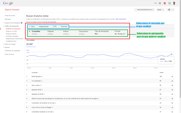 Antes hemos visto cómo acceder a Google Search Analytics, ahora vamos a aprender a utilizarlo: